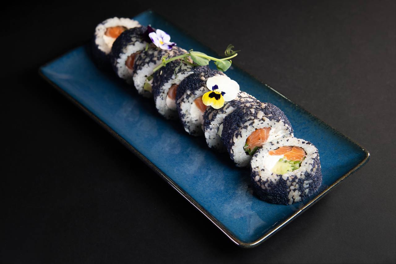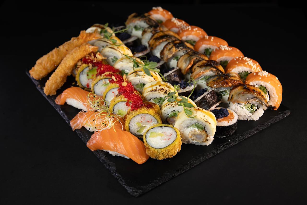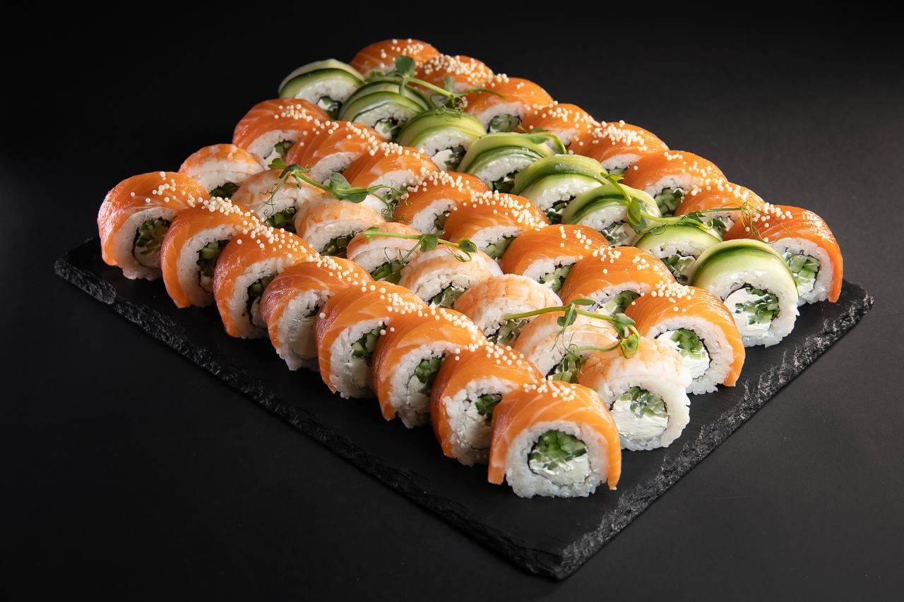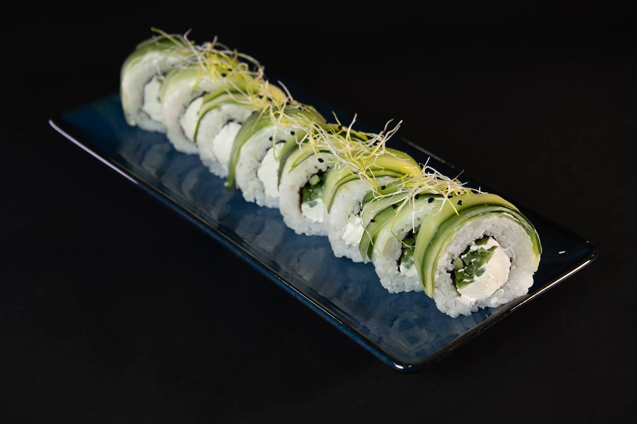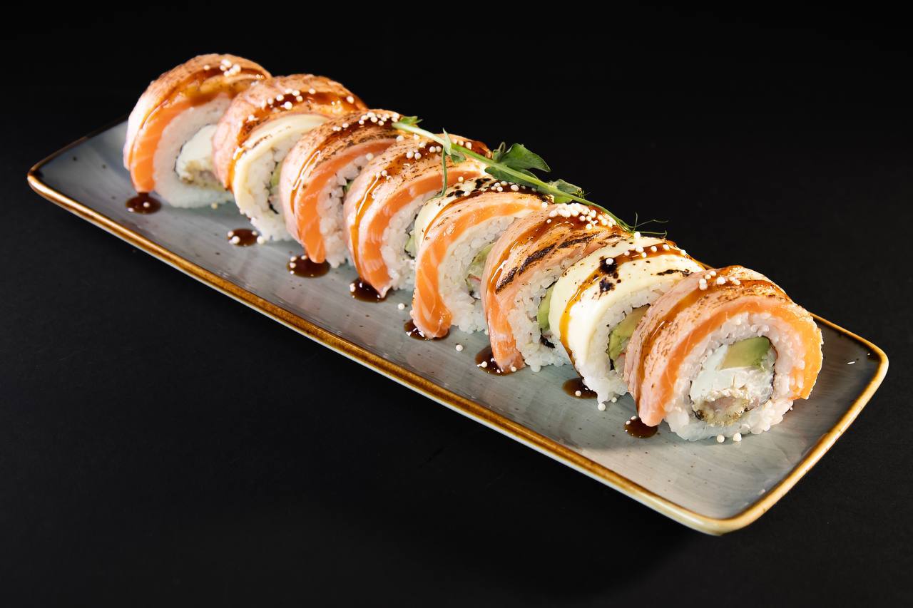 (rýže, nori řasa, losos, avokádo, okurka, smetanový sýr, tempura) 550 g Alergeny: 1, 3, 4, 7