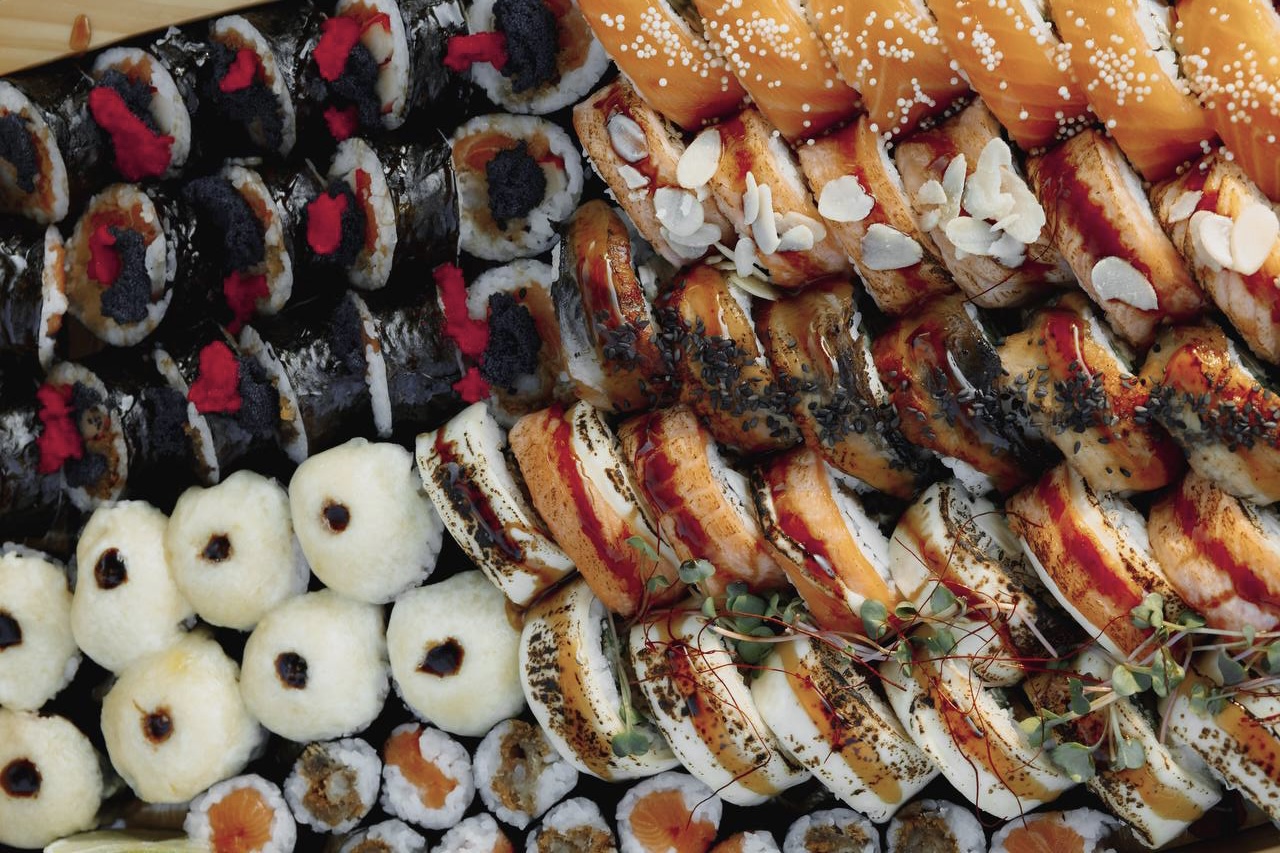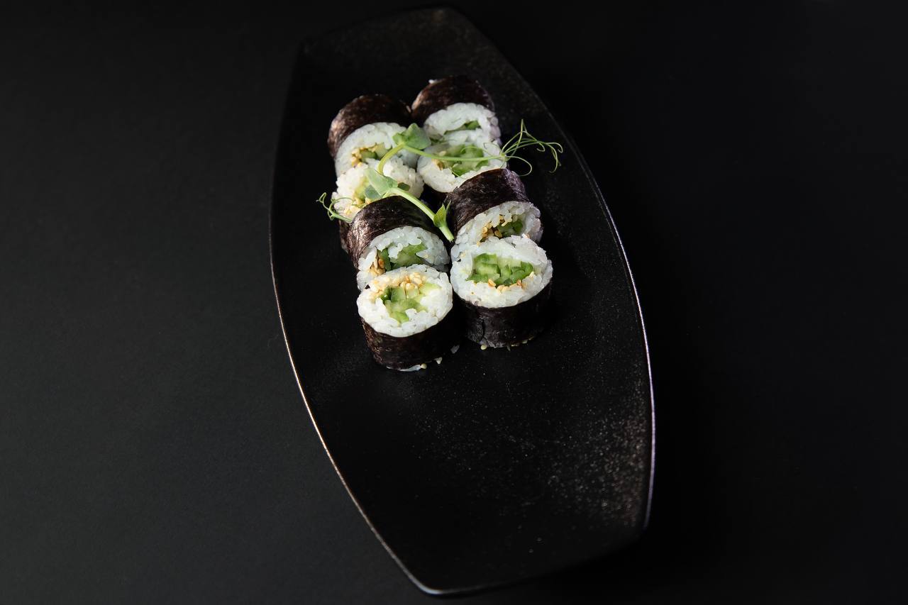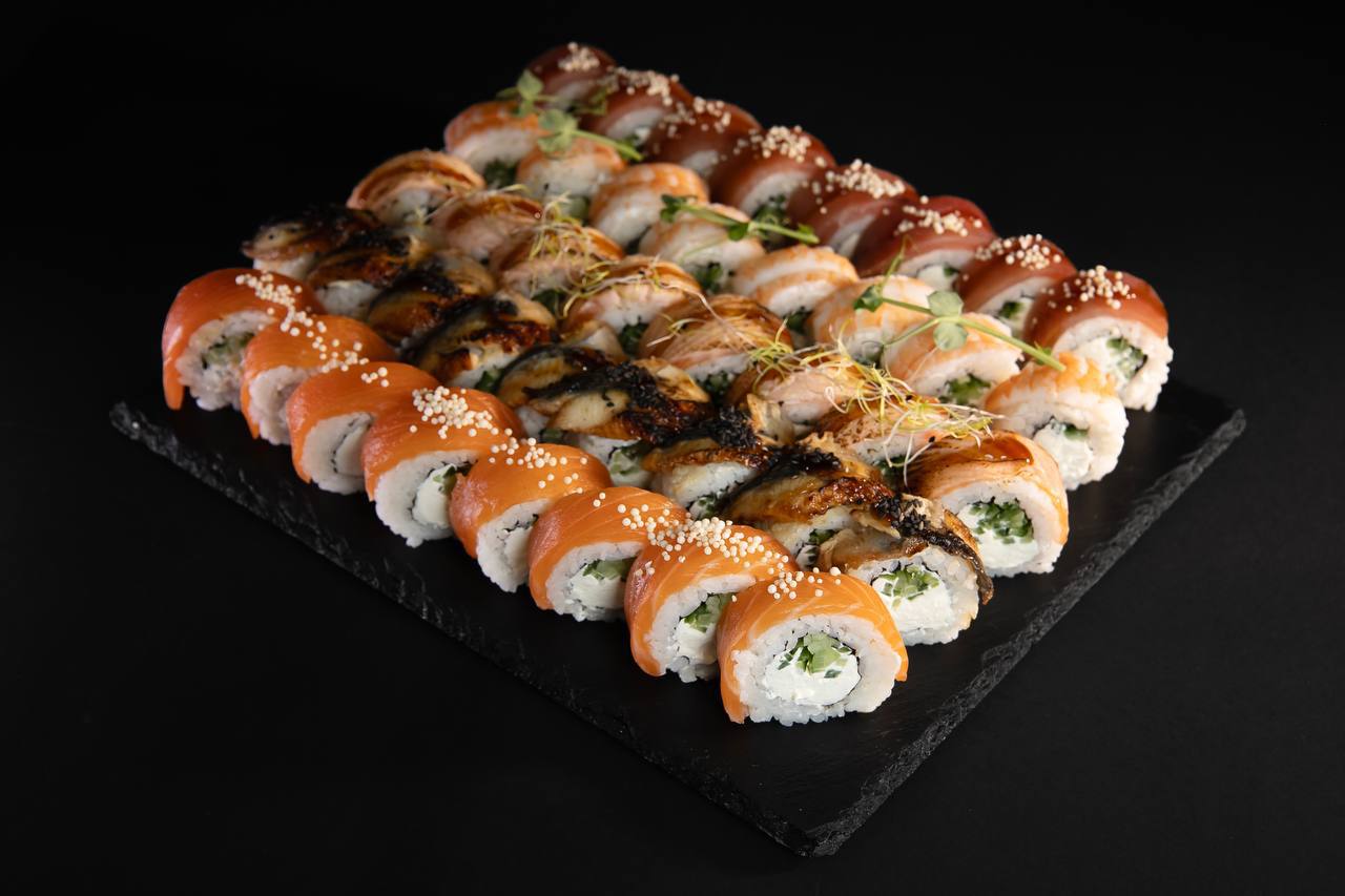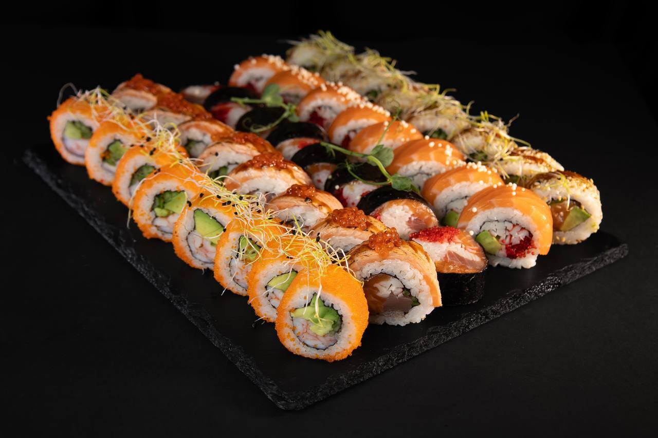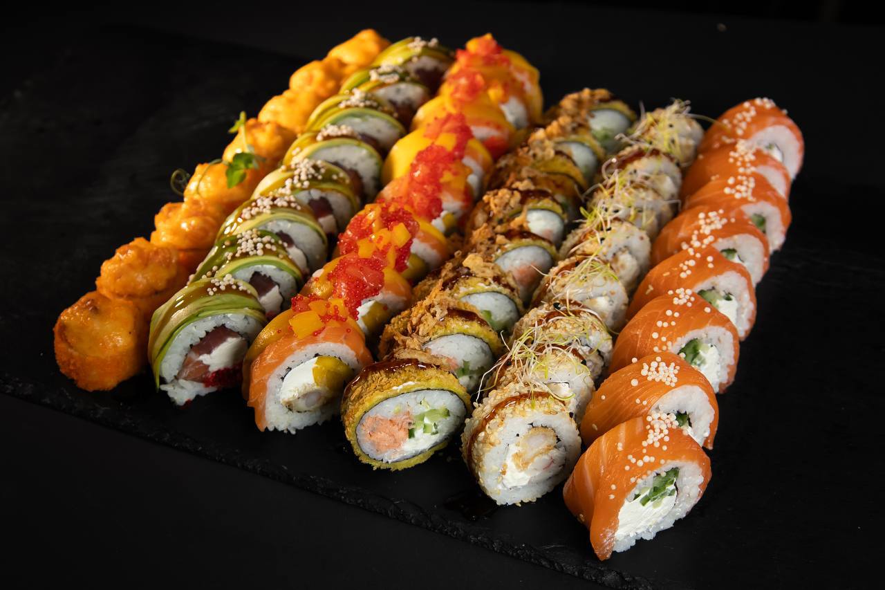 (rýže, nori řasa, losos, avokádo, okurka, smetanový sýr, tempura) 550 g Alergeny: 1, 3, 4, 7