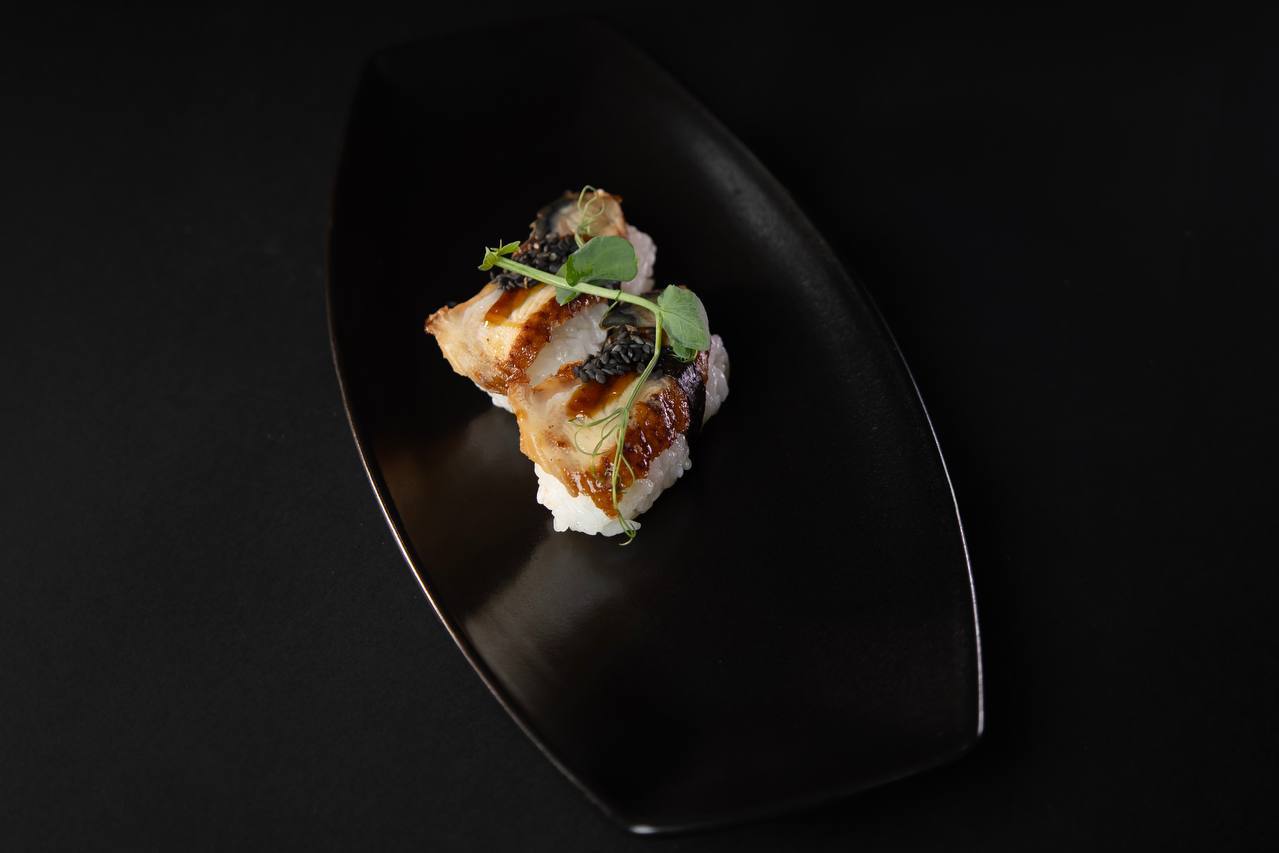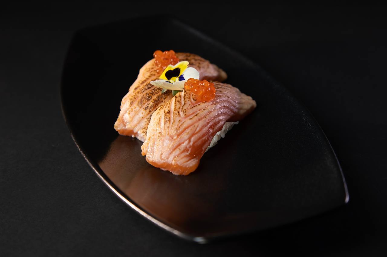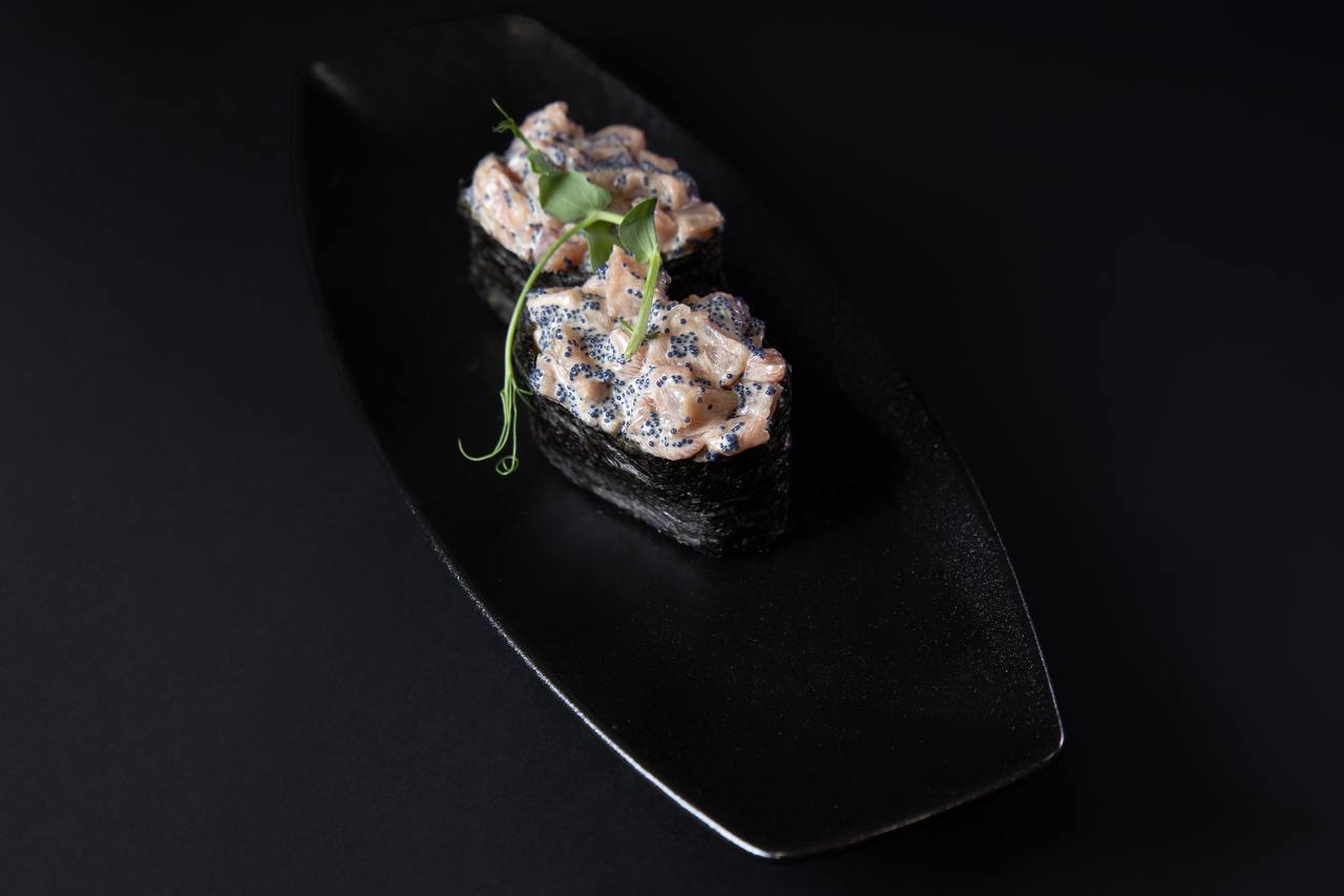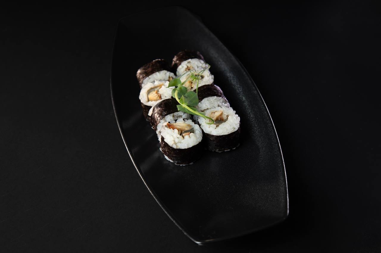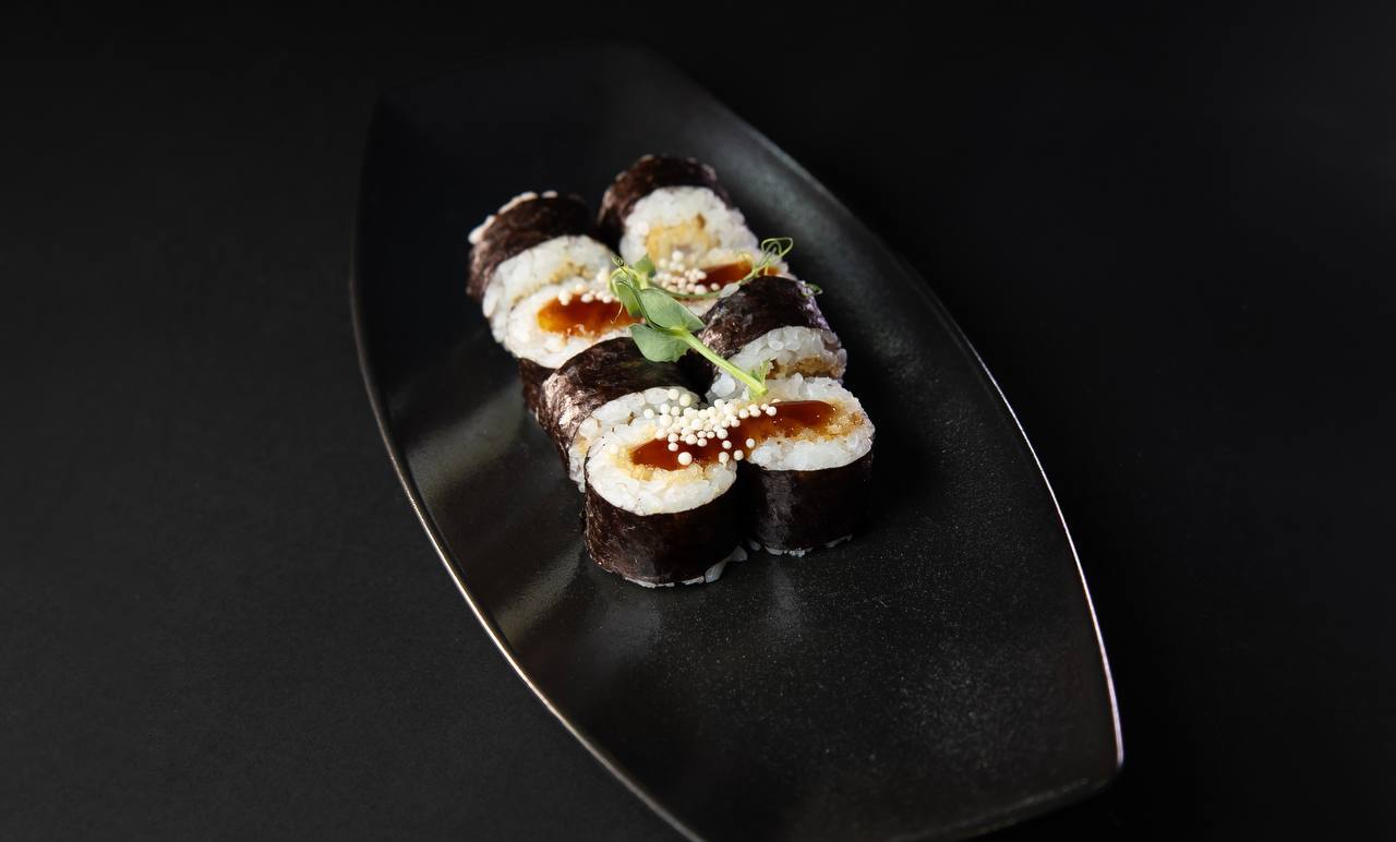 (rýže, řasy, smetanový sýr, losos, avokádo, kreveta v tempuře, tobiko, tempura) 350 g Alergeny: 1, 2, 3, 4, 7
