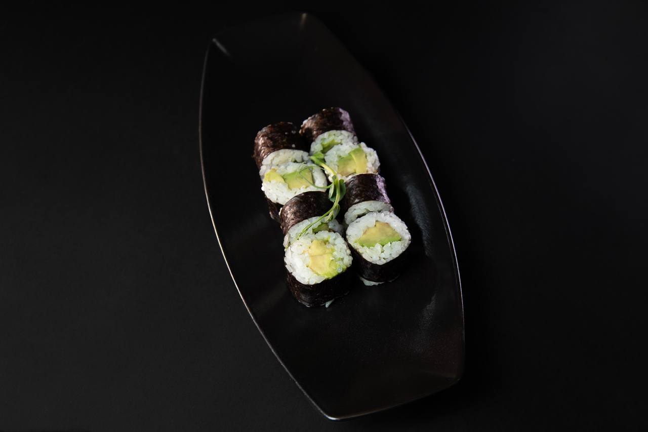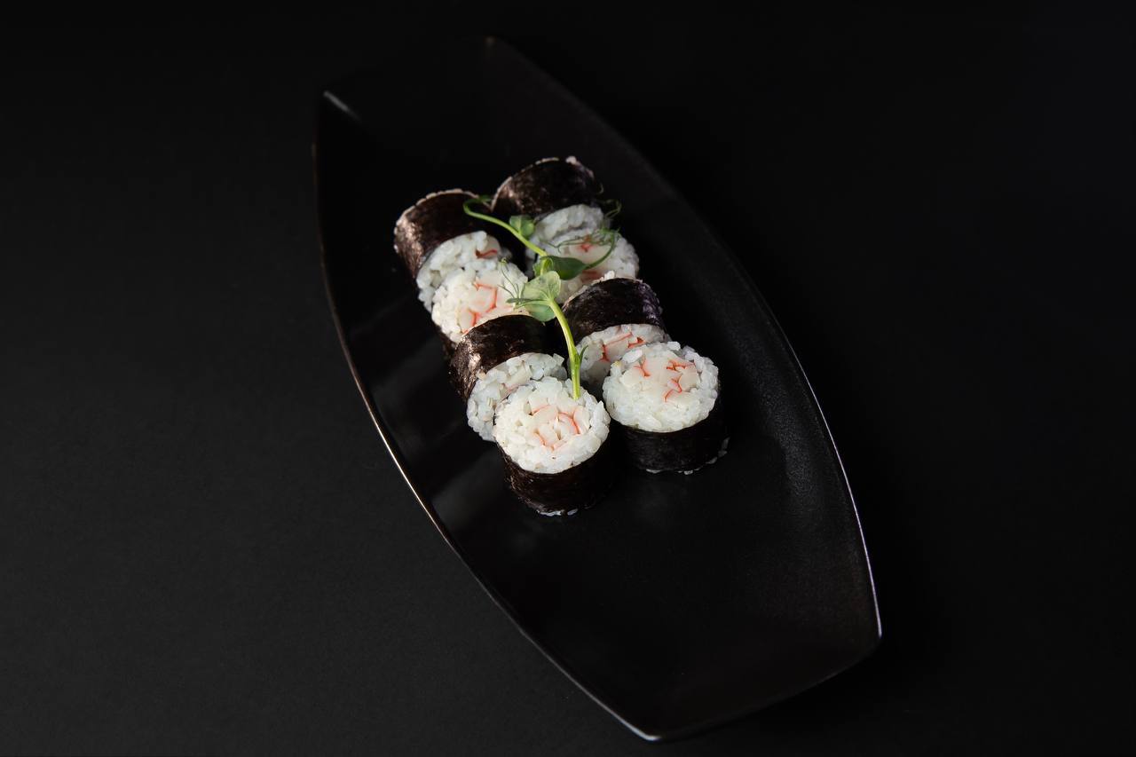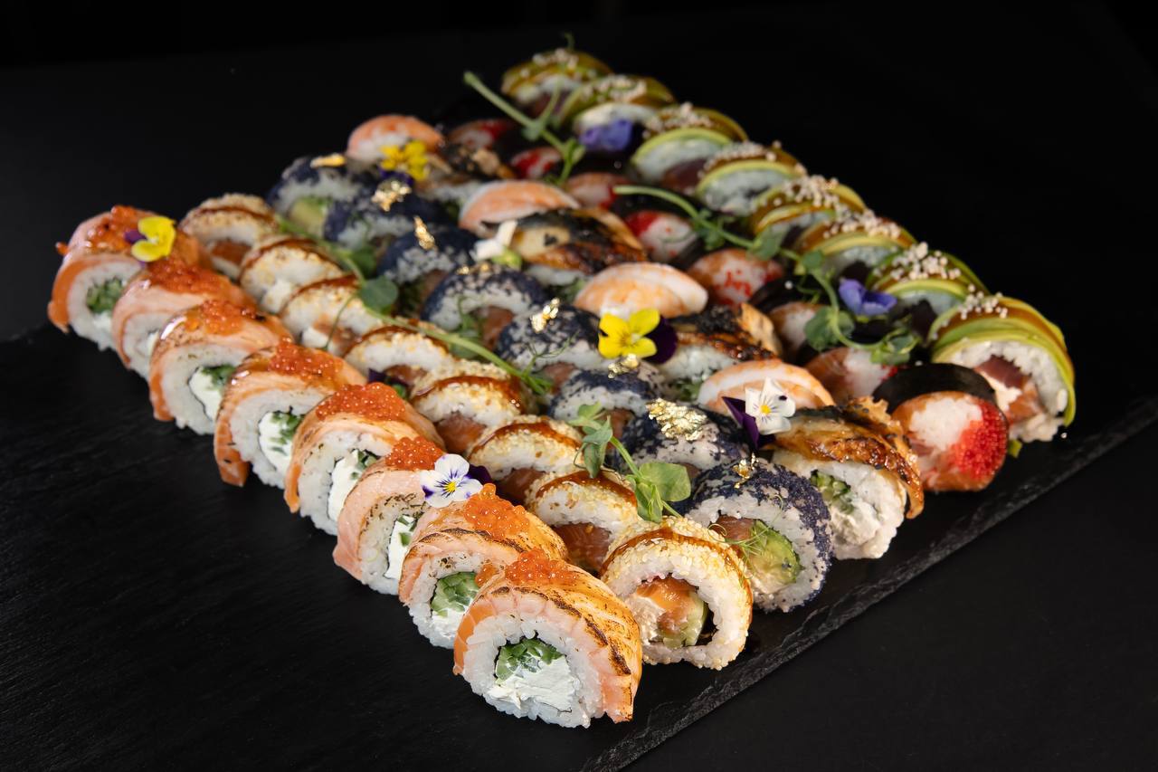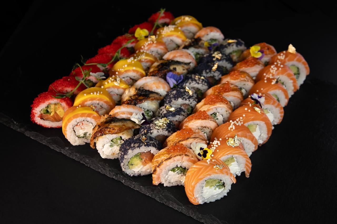 (rýže, nori řasa, kreveta v tempuře, avokádo, sýr Emmental, smetanový sýr, tobiko, obal) 550 g